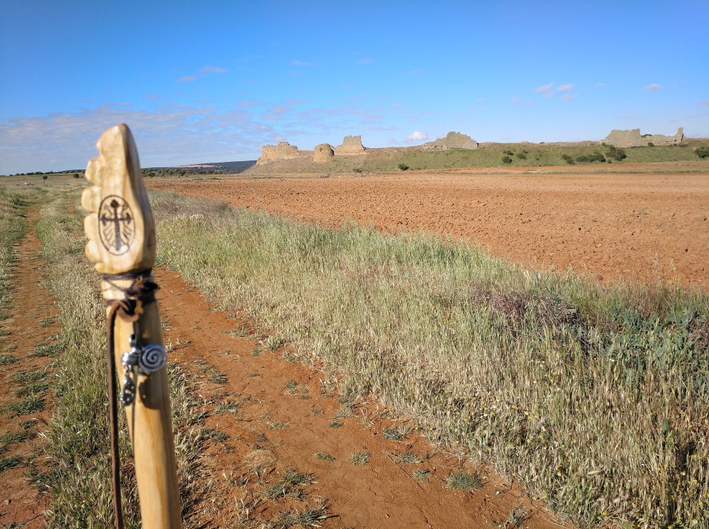 Las largas rectas vuelven a romper la mañana, y un pequeño arcoíris enredado en una percha de riego da color al reseco paisaje de cereal y tierra áspera. Así llegamos a El Cubo de la Tierra del Vino, en plena festividad de San Isidro, lo que nos concede la oportunidad, al atardecer, de vivir una escena digna de ser narrada por Machado: la modesta procesión del Santo sale de la Iglesia, “Casa de Dios y Puerta del Cielo”, como reza en el dintel de su puerta, y se adentra en los campos, seguida por los devotos y algunos peregrinos, para bendecir la tierra en un rito probablemente de reminiscencias celtiberas, que enlaza con nuestro mozárabe Santo. Un lujo para el alma presenciar esta celebración, casi congelada en los siglos.
