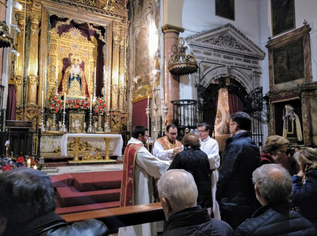Viajar esos días era como hacerlo por primera vez: miedos, nervios, nuevas normas que se ignoraban en gran parte…así que, para empezar, no cayó en que la Fiesta de la Aparición caía en domingo…y se postergaba al lunes para respetar la liturgia. El Boanerges tendió la mano nuevamente y D. Segundo, ya un canónigo más, se ofreció a tomarle juramento en la Capilla de acogida al peregrino en Carretas…curiosamente (o no…que el peregrino no cree en casualidades) él era Deán cuando formalizó su petición de ingreso, y era quien, de haber podido acudir en su momento, le hubiera impuesto la medalla entonces.