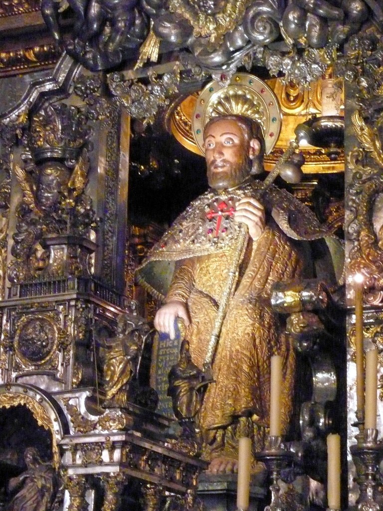El Pórtico, recién restaurado, permitía visitas simplemente con reservar las entradas, pero…estas se entregaban el día antes, con lo que al ir un fin de semana era imposible conseguirlas. Por quemar todas las naves, medio en broma, rogó si había alguna entrada para un nuevo miembro de la Archicofradía…y aparecieron entradas para los tres que iban: el Santo, que no es milagrero, pero ayuda al peregrino.