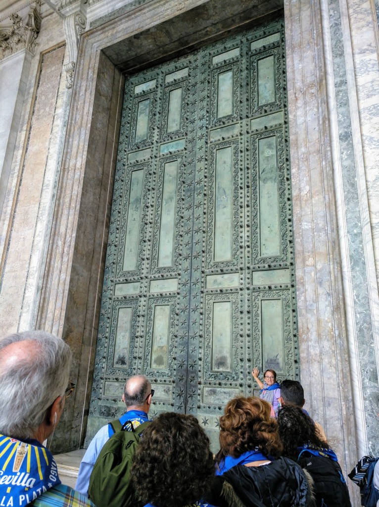 La mañana libre del último día, se convierte en una incesante gymkana por conseguir cada uno aprehender los rincones más íntimos de nuestro imaginario personal de esta ciudad inabarcable. El “inconsciente colectivo peregrino” coincide en un punto común: la Iglesia de Santiago de los Españoles…por más que le quieran cambiar el nombre, el templo, mandado construir por uno de los hijos de Fernando III El Santo, estuvo rodeado de los hospitales de peregrinos que acogían a los españoles que arribaban a la ciudad y mantiene la impronta de nuestras señas de identidad. La renacentista efigie de Santiago Apóstol, joven y con esos rasgos propios de la belleza clásica, nos despide de la Ciudad del Tiber …las monedas arrojadas a la Fontana nos harán regresar sin duda…igual hasta con botas y mochila.