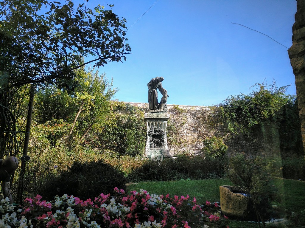 En el exterior, un olivo milenario y un pequeño y joven tejo (esqueje de la pareja de aquel, destruido por un rayo), recuerdan la historia de dos mundos equidistantes que se unieron en una bella historia de amor allá por el siglo XI.