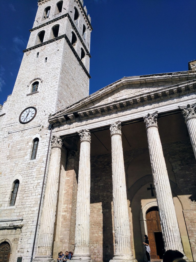 La ciudad eternamente ligada a San Francisco era, por mérito propio, centro de peregrinación ya en vida del Poverello. La llanura que la precede hace aún más imponente la llegada a la amurallada ciudad, previa visita a la Porciúncula, cobijada en la Basílica de Nuestra Señora de los Ángeles. La cuidada urbe, patrimonio de la humanidad, tiene para nosotros un aire familiar “compostelano” en cuanto vemos por sus calles a peregrinos que, con su mochila a la espalda, nos traen recuerdos queridos. Llegamos a la Iglesia de Santa Clara, aquella entre cuyas ruinas San Francisco escuchó la voz que le pedía ayuda ante el abandonado Cristo de San Damián.