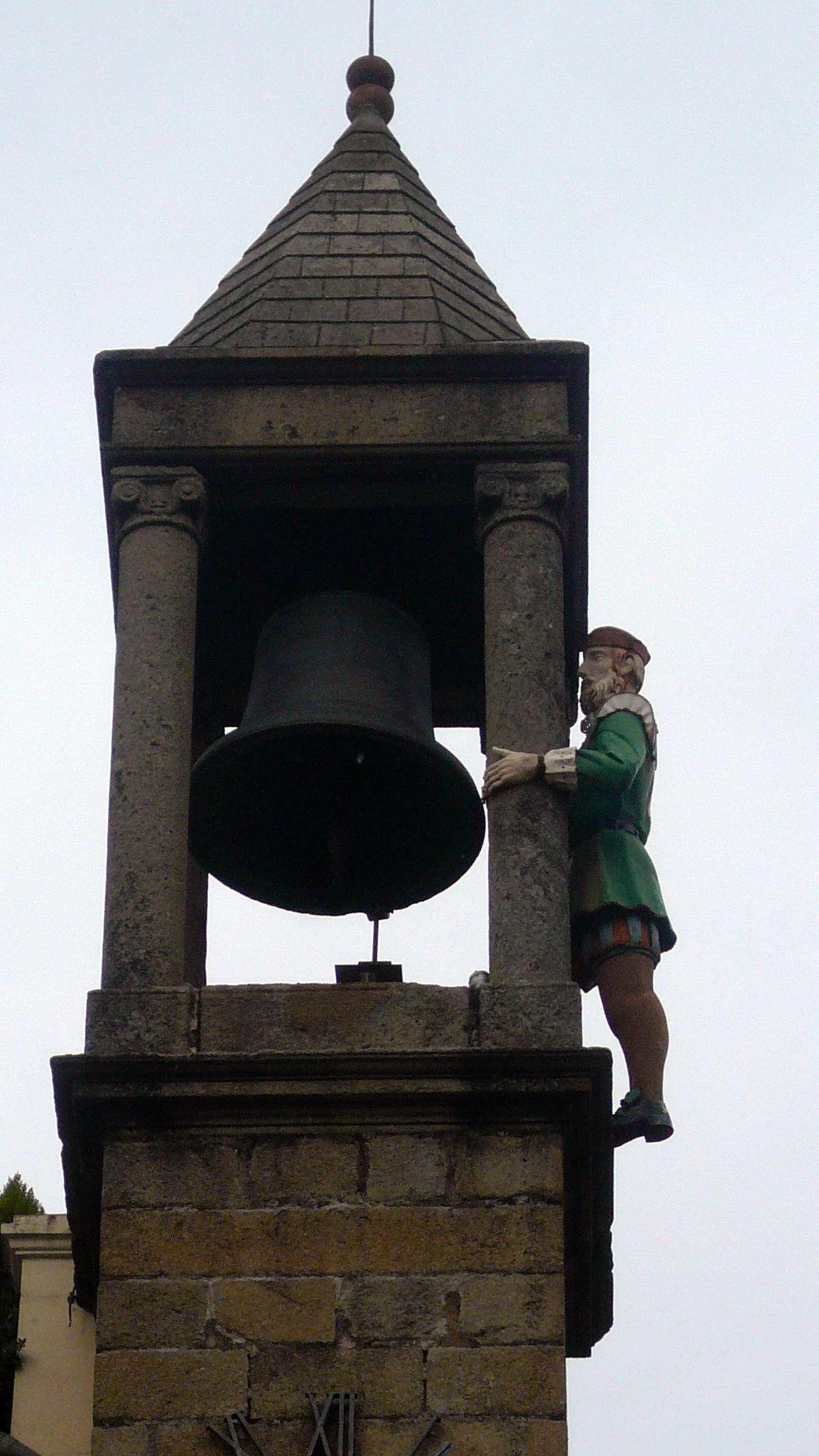 Llegando a la frontera extremeña con Castilla-León comienza a cambiar el paisaje, el paisanaje, y los usos sociales. En la, injustamente olvidada por el trazado del Camino (algo inaudito si tenemos en cuenta la cantidad de hospitales medievales que tenía), ciudad de Plasencia, en su palacio municipal observamos como al campanario accede un autómata dieciochesco conocido como “Abuelo Mayorga”, que hace sonar las campanas a las horas en punto. Y es que, a partir de estos territorios, el reservado uso de las campanas se hace, por tradición e historia, de dominio público, quizá por la influencia castellano-leonesa; comienzan los campanarios y espadañas a aparecer muchos de ellos exentos o con acceso independiente de la Iglesia a la que se adscriben: así, por ejemplo, la torre de la iglesia de Nuestra Señora de la Asunción en Baños de Montemayor.