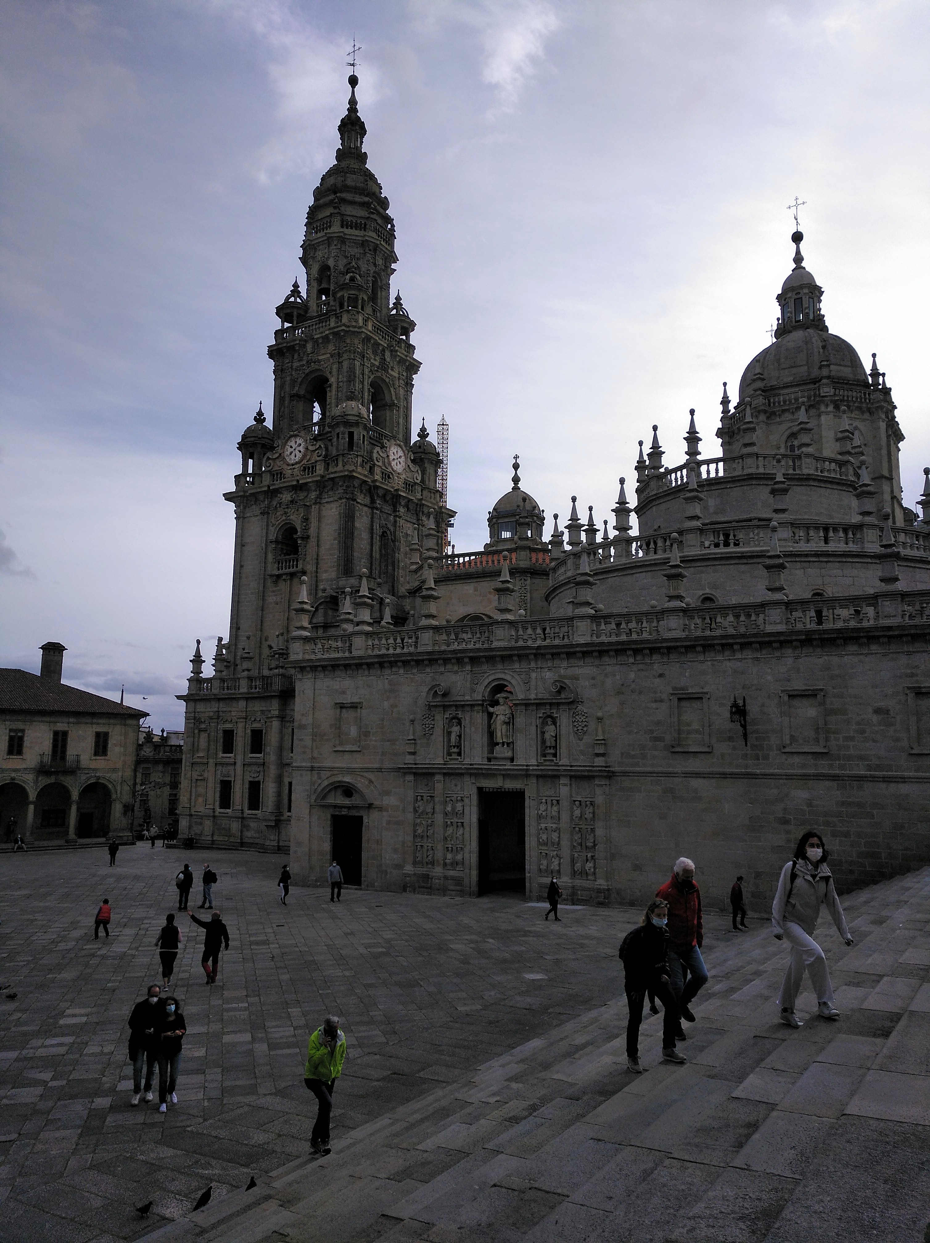 Y llegó a una ciudad dormida tras la tormenta, silenciosa y extraña al jolgorio habitual, por calles casi vacías. La linterna de la Berenguela iluminaba el arribo a una Puerta Santa abierta y sin apreturas, donde los peregrinos escaseaban, y los turistas no tenían que esperar para hacerse la foto. Un encantamiento parecía cubrir Compostela, como en un cuento antiguo digno de los hermanos Grimm.